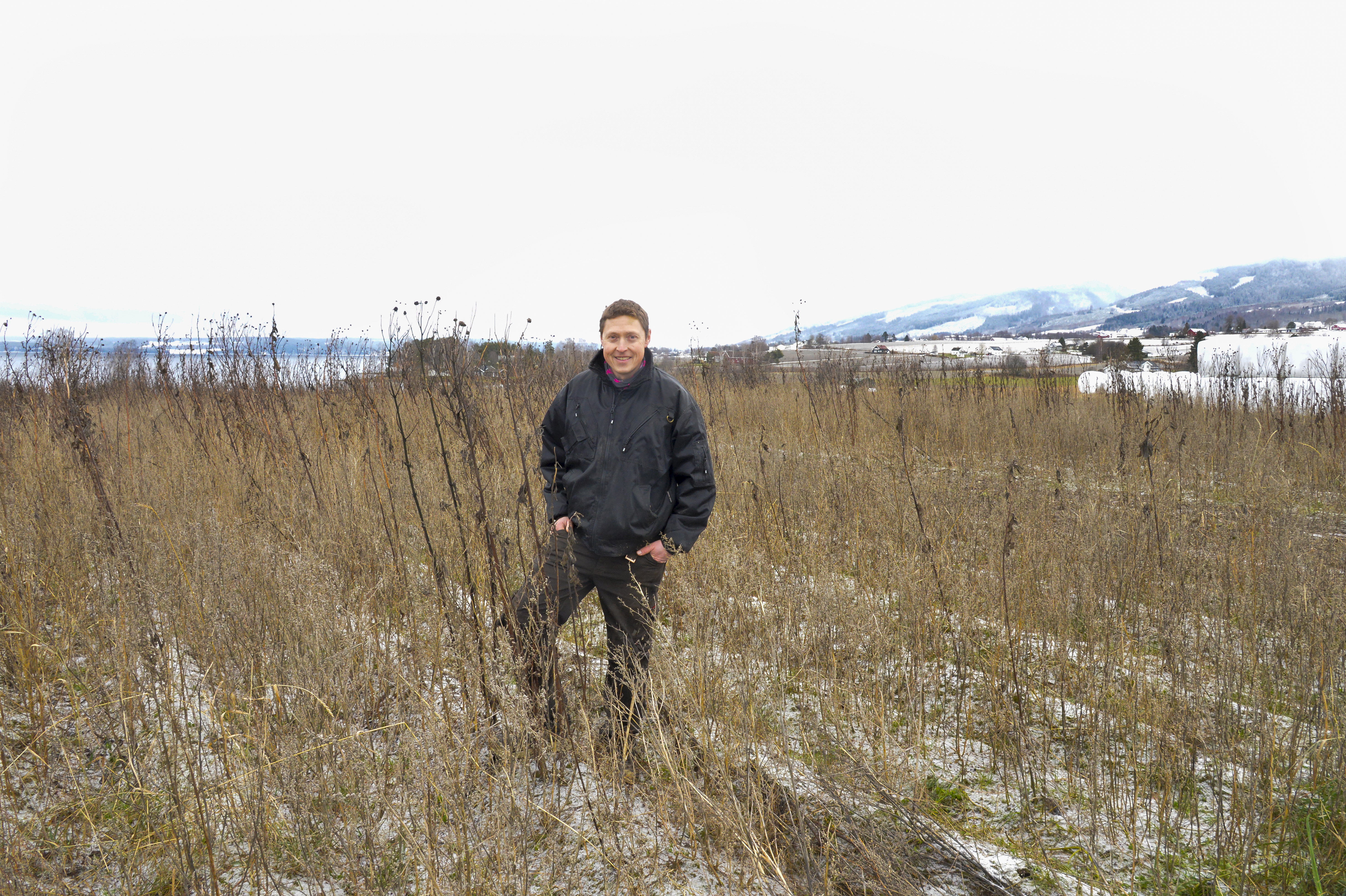 Jordskokk trives ved Mjøsas bredd på Skreia. Tåle Willerud på Ulsrudbakken gård må vente til telen går før de velsmakende knollene igjen kan høstes. (Foto: Per A. Borglund)