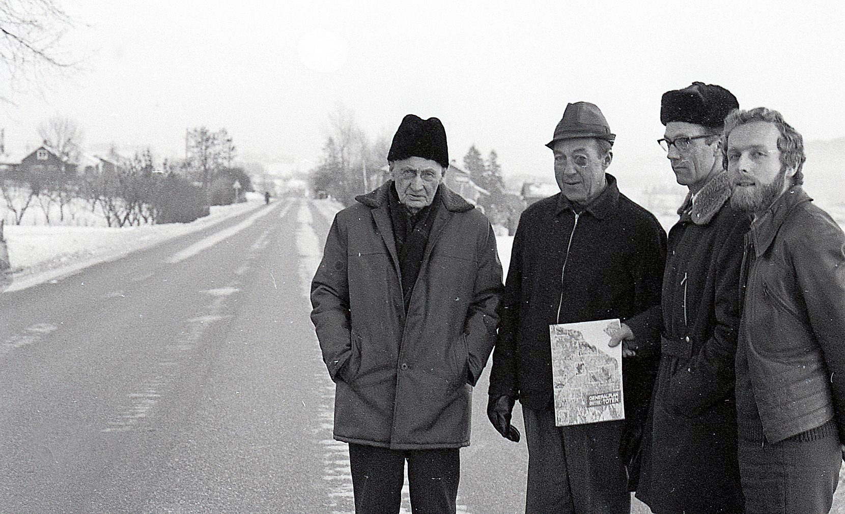 Forkjemperne for riksveg 33 organiserte seg på 70-tallet. Fra venstre Einar Hermanrud, Anners Aarsby, Trond Årstad og Harald Klundby. (Arkivfoto: Kai Morten Solum)
