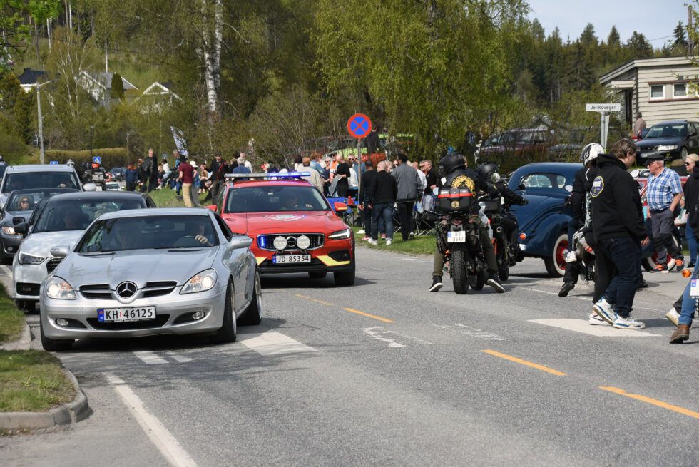 Her kjører innsatslederen i brannvesenet utrykning gjennom Skreia på 1. mai i fjor. Der var mange samlet, og det var trangt om plassen. I år blir det tiltak. (Arkivfoto: Jon Olav Andersen)